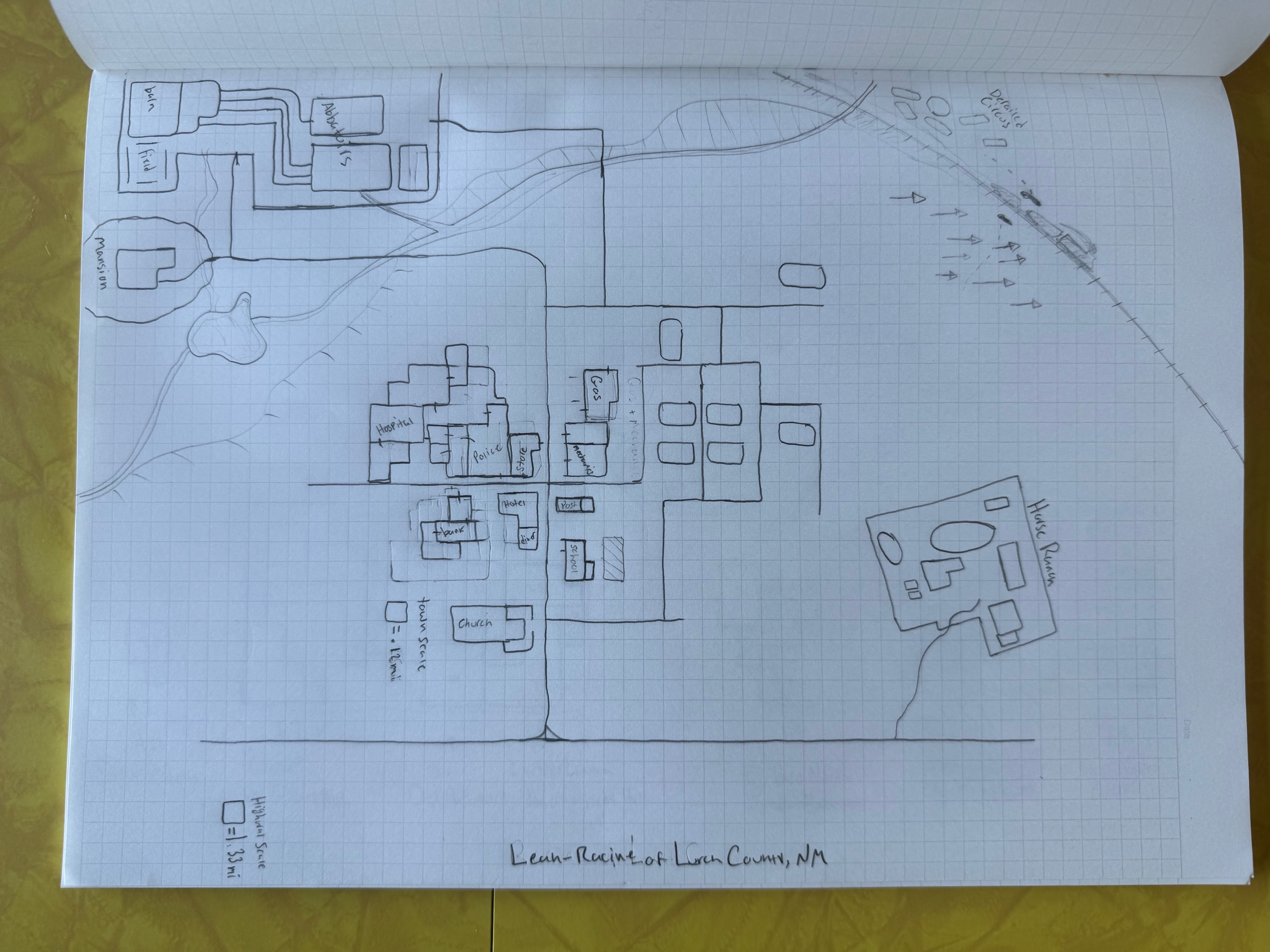 From a WIP design for Call of Cthulhu. Historically researched settlement map, home to PCs, NPCs, and a dark conspiracy.