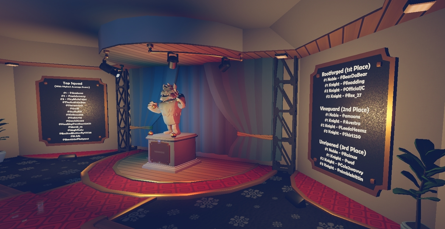 Within their own factions, the individual contributions of every Noble and Knight would be weighed on inter-faction leaderboards, rewarding the top three players in both classes with exclusive items and the unique opportunity to have their names memorialized after the event was over in a permanent fixture within Rec Room's main social hub, the Rec Center.